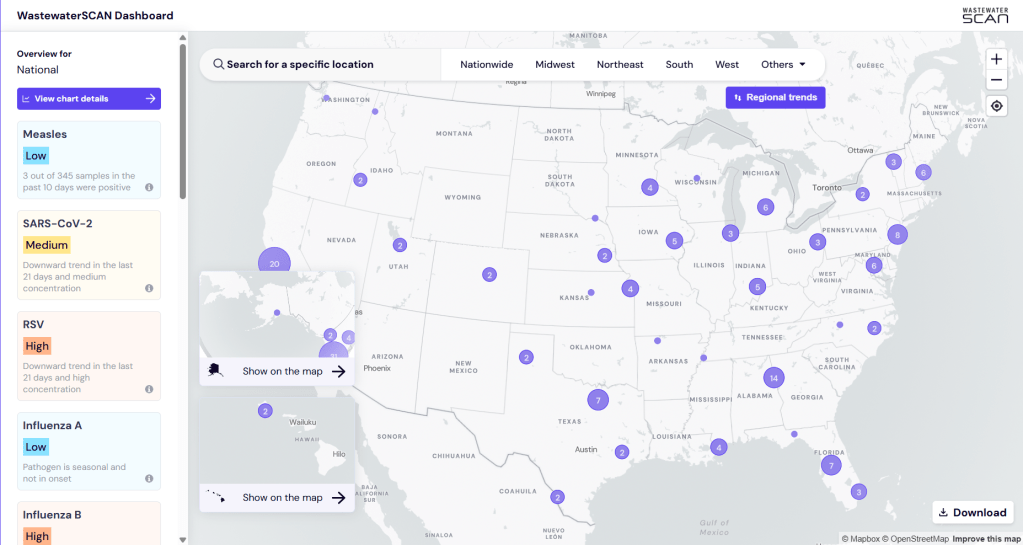 Roughly half of US states have their own dashboards that track COVID wastewater data. A few local and regional public health offices do, too.